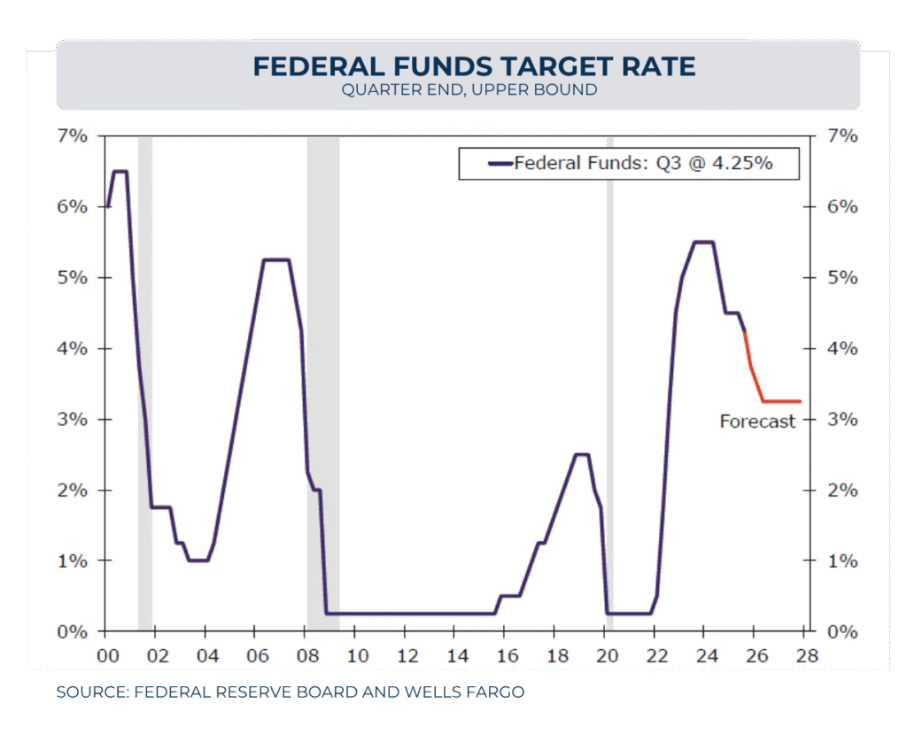 The labor market is transitioning to a more normalized state after years of exceptional tightness. As the government has been shut down since October 1st, Alternative data services (ADP) suggest that employment growth remains soft and is moderating. The unemployment rate is expected to stabilize around 4.5% by year-end—still historically low by pre-pandemic standards. Meanwhile, inflation continued to run above the FOMC’s 2% target. Core PCE averaged 2.9% year-over-year in Q3 2025. After the October cut, The Fed is expected to continue prioritizing the flagging labor market, with a further 25 bps rate cut anticipated in December.
